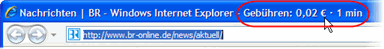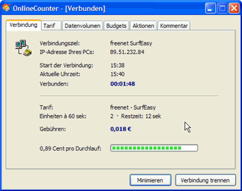 Während einer laufenden Verbindung zeigt OnlineCounter die laufenden Gebühren in jedem aktiven Windows-Fenster an.