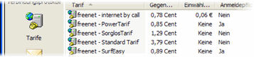 OnlineCounter wird mit einer Vielzahl gängiger Tarife ausgeliefert. Am besten aber, Sie überprüfen gleich zu Beginn, ob Ihr Tarif vorhanden ist. Falls nicht, können Sie ihn jederzeit selbst hinzufügen oder einen vorhandenen bearbeiten. Es lassen sich alle gängigen Tarifmodelle abbilden.